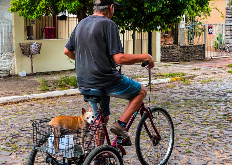 Um negócio é bom quando é bom para os dois, diz o ditado. A parceria do ciclista com seu mascote foi flagrada em São Leopoldo, no Vale do Sinos. Passeio de bike para o descanso do pet, que também funciona como segurança caso alguém avance no patrão. Desde que seu latido seja forte, claro. Neste caso, cachorro pequeno late alto mesmo. Como dizem os franceses, em pequenos frascos os grandes perfumes.