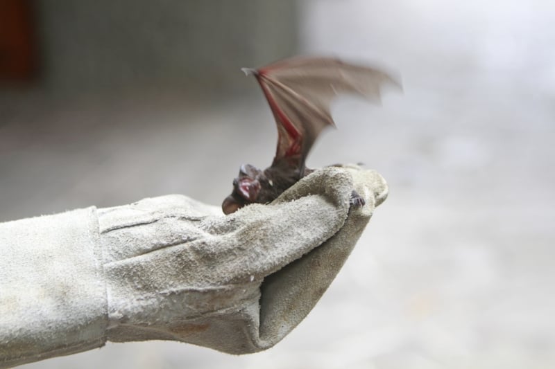 Mais de 30 morcegos foram recolhidos por técnicos da Secretaria Municipal do Meio Ambiente de Porto Alegre na Travessa da Paz, próximo ao Parque da Redenção, na quinta-feira passada. Os animais foram encontrados por pedestre que viu cerca de 30 deles na calçada, "alguns se arrastando, outros ensanguentados, com as asas quebradas, outros tentando voar e caindo". A suspeita é que os morcegos tenham sido afetados por algum produto ou veneno. Na foto de Andressa Pufal, um deles sendo recolhido por técnico da prefeitura usando luvas especiais.