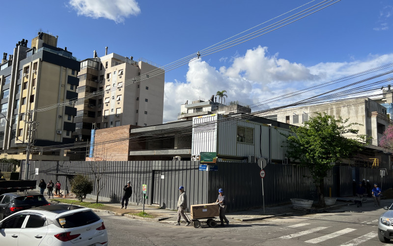 Em fim de agosto, tapumes ainda estavam no local e ritmo era forte para concluir os trabalhos. Foto: Patrícia Comunello/JC