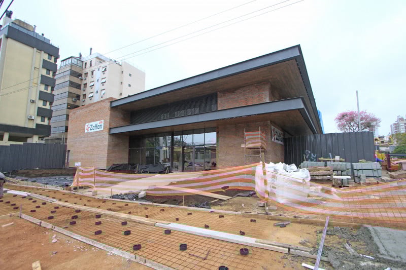 A fachada, com tijolos á vista e grandes vidraças escuras seguem o estilo das últimas lojas de rua abertas pelo Zaffari. O padrão estreou com a filial da avenida Juca Batista, no bairro Hípica, em operação desde 2017.