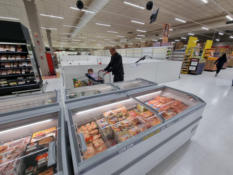 "Onde encontro água?", perguntou uma cliente, que tentava achar as prateleiras de bebidas que não existiam mais no espaço. O setor de hortigranjeiros é diminuto perto da disposição anterior. Tudo está improvisado. Até mesmo o número de caixas reduziu, pois tapumes ocupam a área das antigas máquinas.