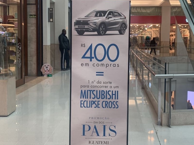 A campanha de Dia dos Pais do shopping Iguatemi de Porto Alegre realiza o sorteio de um carro Mitsubishi Eclipse Cross 0km. A cada R$ 400,00 em notas cadastradas no aplicativo do shopping até o dia 14 de agosto, os clientes recebem um número da sorte para concorrer ao prêmio.