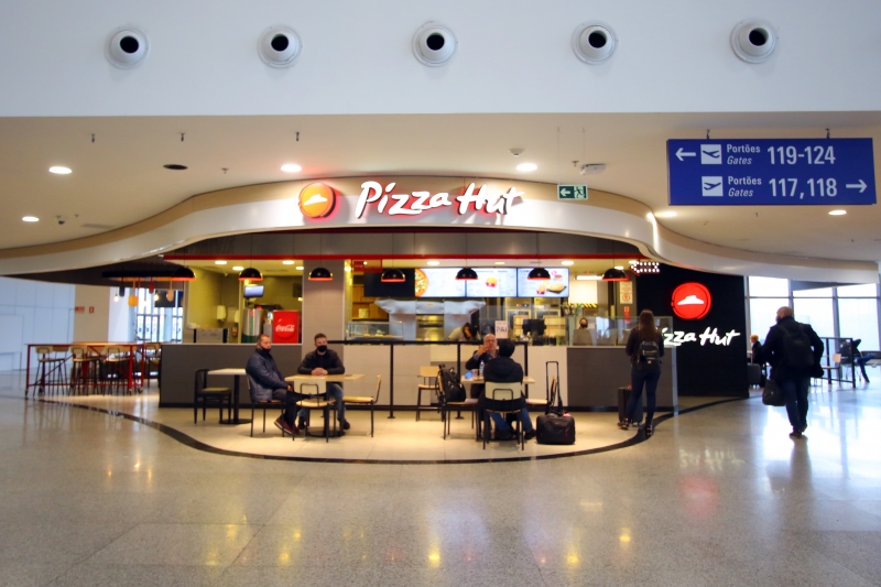 Um dos quiosques da Pizza Hut no aeroporto fica na área de embarque, perto dos portões 117 e 118. Foto: Patrícia Comunello/JC