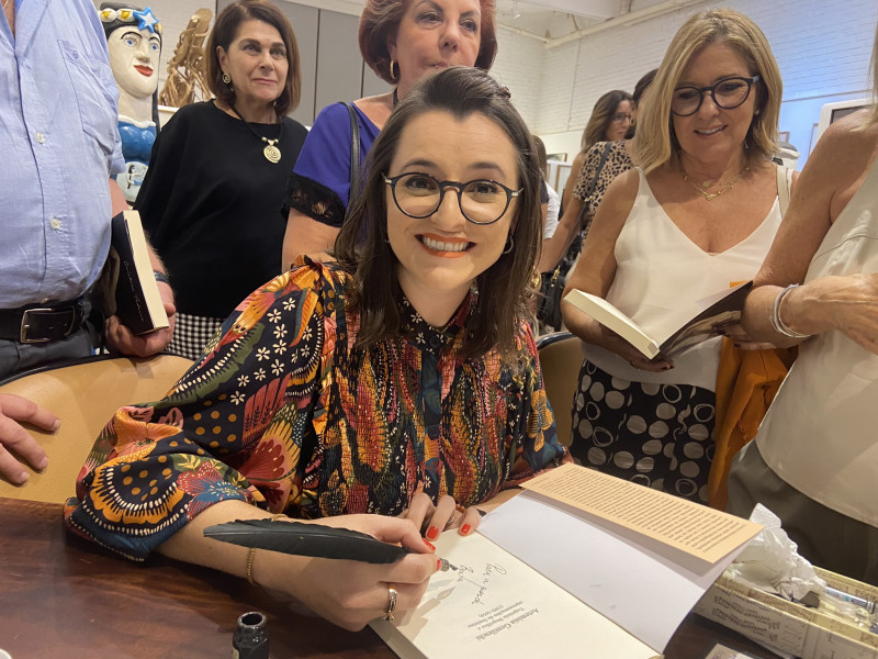 Cristine Tedesco, doutora e mestre em História, foi a palestrante convidada por Tina Zappoli e Sandra Echeverria para uma conversa sobre a trajetória biográfica da pintora Artemísia Gentileschi. Pesquisadora da obra da artista, Cristine se debruçou sobre arquivos, cartas, publicações e obras que resultaram no livro que teve tarde de autógrafos concorrida, na terça-feira passada. Maria Cecília Sperb, Angela Dreifuss, Alessandra Bertolucci e Graça Coelho acompanharam a palestra.