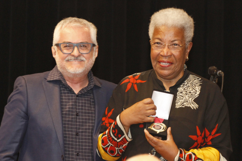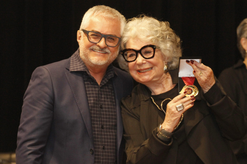 Pedro Dreher com Vera Daisy nas homenagens