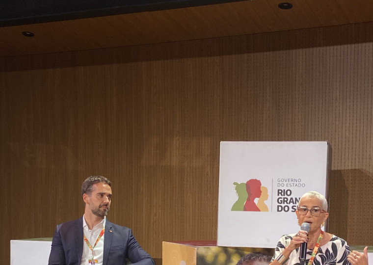 O governador Eduardo Leite e a secretária de cultura, Beatriz Araújo
