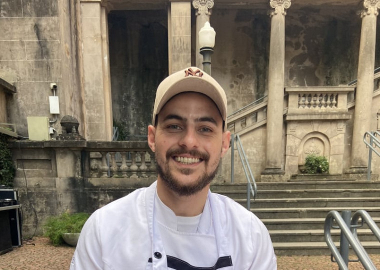 O chef Matheus Monteiro, atualmente integrando a equipe do Café da Catedral, apresentou na tarde de domingo sua criação para o projeto Arte no Prato, da 14ª Bienal do Mercosul, para imprensa e convidados. Buscando inspiração no Estalo, o mote curatorial da mostra de arte, o prato Terra e Céu é pura terra gaúcha, originalidade e ingredientes produzidos por aqui. Um mix de grãos com cogumelos frescos, terra de nozes com carvão ativado, gel de ruibarbo, ovo pochê e a sofisticada trufa Sapucay remetem diretamente à simbologia do local que abriga o café.