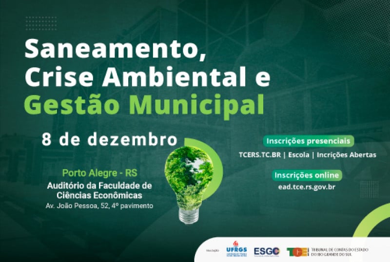Os desafios da gestão pública municipal na área ambiental – em especial as responsabilidades com os recursos hídricos – serão tema de debate nesta quinta-feira, dia 8, no seminário Saneamento, Crise Ambiental e Gestão Municipal, promovido pelo Tribunal de Contas do Estado (TCE-RS), em conjunto com a Faculdade de Ciências Econômicas e Escola de Administração da UFRGS. Destinado a servidores públicos e gestores dos órgãos fiscalizados pelo TCE-RS, além de comunidade acadêmica e sociedade, o evento será realizado no auditório da Faculdade de Ciências Econômicas da UFRGS (Av. João Pessoa, 52, 4º pavimento), em Porto Alegre, das 9h às 12h e das 14h às 18h. As informações são da assessoria de comunicação do Tribunal.