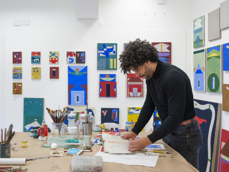 A qualidade da pintura com têmpera lembra muito as cores das fachadas populares da arquitetura brasileira, e é esse afeto que o artista busca. "A têmpera me traz uma memória afetiva que me interessa muito. Sabe quando você viaja pelos interiores e vê essas capelinhas? Elas são memórias de uma visualidade que nos forma de algum modo", comenta André, "A cor é um gesto poético. Quando eu penso cor, eu tento buscar a memória afetiva que me conecta a essa visualidade que nos conecta com as nossas raízes, nossas heranças populares afro-brasileiras."