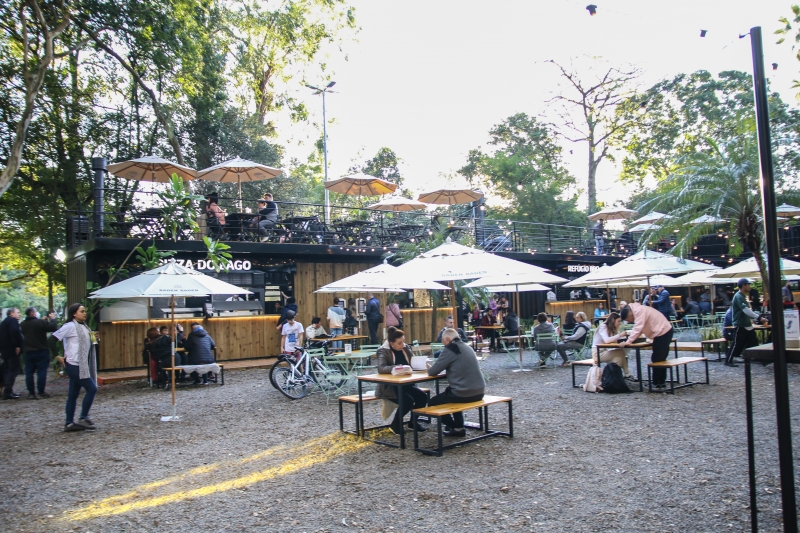 O local, situado entre o espelho d'água e o lago do parque, conta com um bar e cinco operações de gastronomia instalados em contêineres que são acessados por uma área central de mesas e bancos. Há ainda a possibilidade de sentar no mezanino das estruturas e ficar bem próximo das copas das árvores.