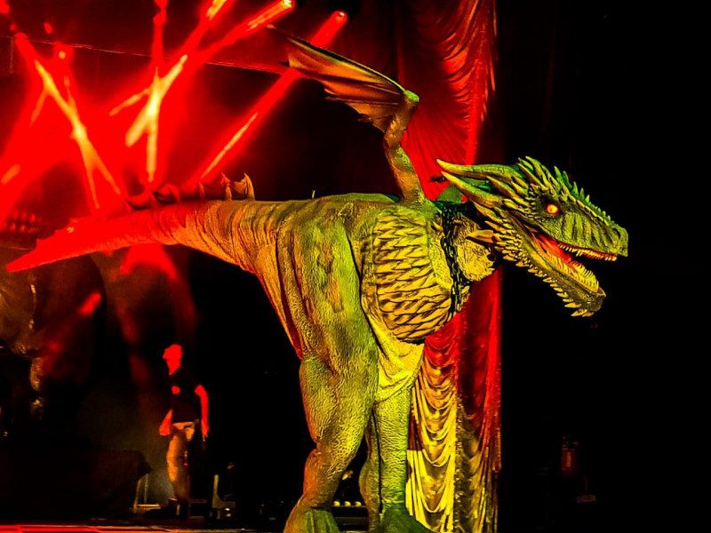 “Este é um circo temático no qual investimos para remeter o público à época jurássica. A ideia surgiu depois que paramos de utilizar os animais em nossos espetáculos. Porém, no Brasil não existia a tecnologia para fazer as réplicas de dinossauros, então encomendamos tudo do exterior. Além dos dinossauros, acrescentamos os dragões e todo o espetáculo gira em torno dessa história”, explica Marcelo Palácios, que integra a sétima geração da sua família no circo e foi o idealizador do espetáculo do Gigante Circo Dos Dinossauros. Ele detalha, ainda, que o circo é o único no Brasil a contar com um dinossauro T-rex com mais de 15 metros de altura.