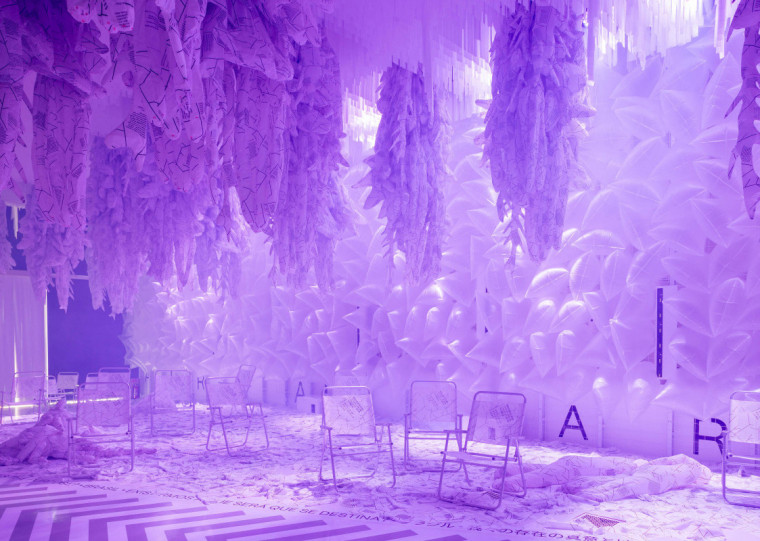 Uma das soluções para driblar a proposta mais modesta foi a criação do "Parangoromo" - traje que funde o Parangolé, de Hélio Oiticica, ao hagoromo, uma vestimenta japonesa -, que tem sido distribuído para mil visitantes por dia. A Apex não informou quanto foi gasto no pavilhão.
