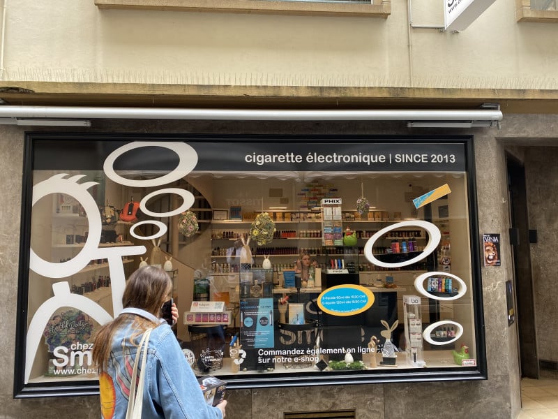 A Suíça é um exemplo de país com regulação para os DEFs. Em Neuchâtel, há diversas lojas descoladas e com linguagem atraente a jovens exclusivas na venda dos produtos, com uma grande variedade de sabores e de nicotina líquida.