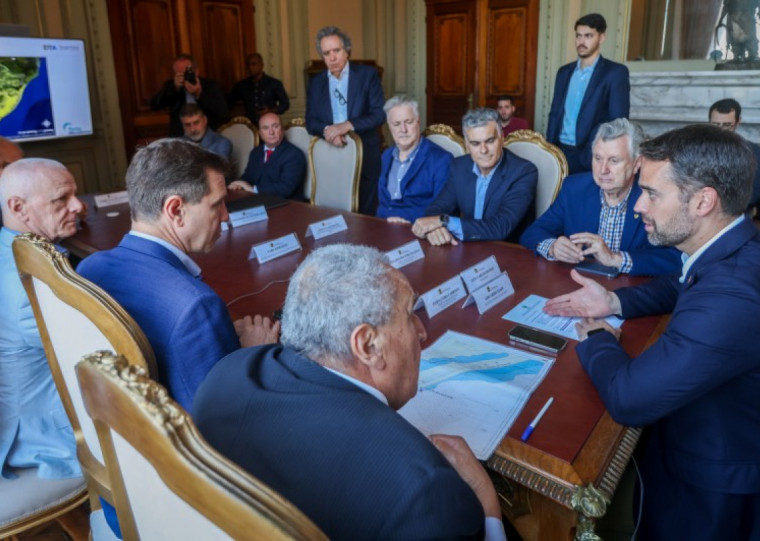 O governador Eduardo Leite reafirmou nesta quinta-feira (31) o apoio do governo ao projeto do Porto Meridional de Arroio do Sal. Durante a manhã, Leite e os secretários de Desenvolvimento Econômico, Ernani Polo, e de Comunicação, Caio Tomazeli, se reuniram no Palácio Piratini com representantes da concessionária do futuro empreendimento.