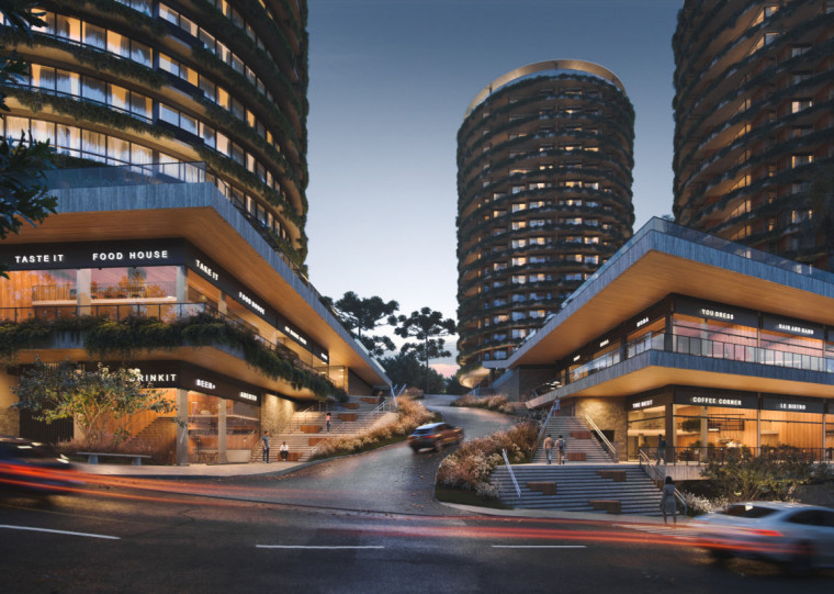 Serão 18 mil metros quadrados de área entre o Centro e a Via Gastronômica, com cinco torres redondas de 16 andares cada e um total de 133 mil metros quadrados de área construída. O empreendimento já está em fase de preparação do terreno e tem entrega prevista para 2030.
