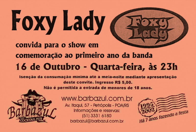 Convite da banda Foxy Lady, que se tornou uma das 'habitués' no palco do Barbazul