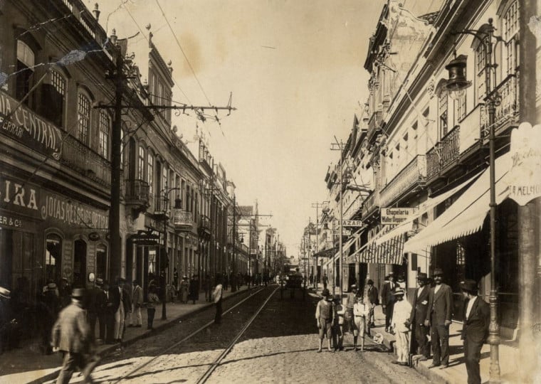 Imagem da Rua dos Andradas, em Porto Alegre, nos primeiros anos da década de 1910