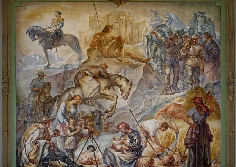 Essa formação tão diversificada se deu naturalmente, pelo convívio e troca culturais e pode ser visualmente conferida na obra “A formação histórico-etnográfica do Rio Grande do Sul” (1955), do artista Aldo Locatelli, exposta no Palácio Piratini, em Porto Alegre. Ali estão presentes o português, o indígena, a mulher, o tropeiro, o camponês. A grande ausência sentida no afresco do artista é a do negro. Mulheres e homens negros tiveram papel fundamental na formação do Rio Grande do Sul, seja pela contribuição cultural, seja pela força de trabalho, seja pela bravura nos campos de batalha. Ainda assim, foram esquecidos na obra que retrata a formação do povo gaúcho.