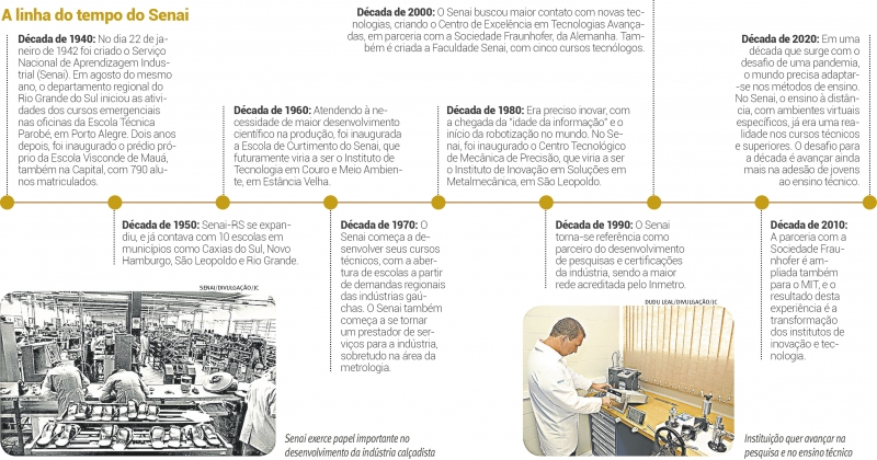 Se em 22 de janeiro de 1942, quando Getúlio Vargas publicou o decreto de criação do Serviço Nacional de Aprendizagem Industrial (Senai), o objetivo era garantir a transformação do trabalhador para a crescente indústria brasileira, oito décadas depois, o Senai assume um papel fundamental não apenas no desenvolvimento de quem produz, mas na inovação tão necessária para a competitividade das empresas gaúchas.