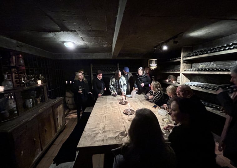 O visitante faz quatro paradas ao longo do percurso, todas com rótulos prestigiados da vinícola na taça. O ponto alto do roteiro é a entrada na Cela da Cave, local construído nos anos 1970, onde ainda hoje são armazenados vinhos históricos. É nesse local escuro e silencioso que começa a viagem gastronômica, com foundue harmonizado com vinhos e espumantes.