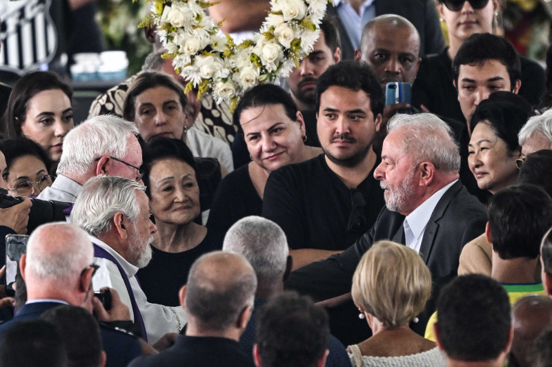 Ao se aproximar do caixão, Lula abraçou os parentes do Rei do futebol. Pouco depois, foi iniciada uma cerimônia religiosa. O presidente ficou ao lado do padre Javier Mateo Arana, da diocese de Santos.