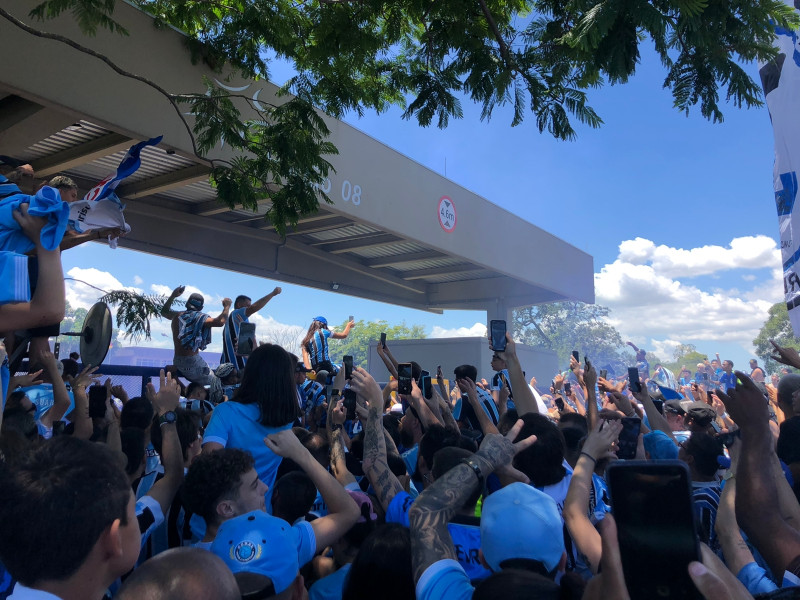 Torcida do Grêmio festeja chegada de Luis Suárez a Porto Alegre