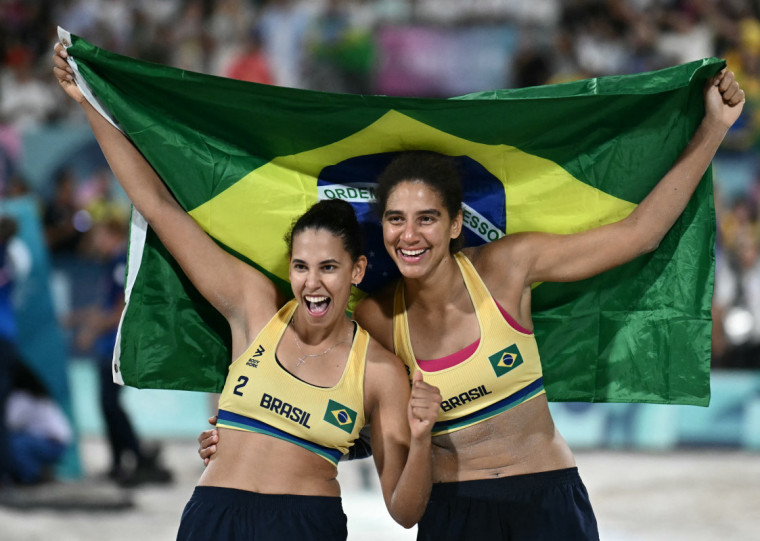 Duda e Ana Patrícia conquistaram o terceiro ouro do Brasil nas Olimpíadas de Paris 2024. A dupla brasileira venceu as canadenses Melissa Paredes e Brandie Wilkerson por 2 sets a 1 (26/24, 12/21 e 15/10), nesta sexta-feira (9), na decisão do vôlei de praia feminino e vai subir ao lugar mais alto do pódio.