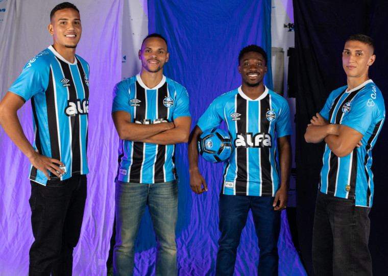 O anúncio foi feito através das redes sociais do clube. O tradicional uniforme 1 das três listras azuis, pretas e brancas teve a alteração mais evidente na gola, que terá o formato em V. As mangas serão predominantemente azuis. Na parte de trás, o manto apresenta uma etiqueta estilizada escrito "Imortal", logo abaixo, está a bandeira do Rio Grande do Sul, reforçando a origem gaúcha do Time. Destacando a torcida gremista por todo o planeta, a barra lateral da camisa traz a sublimação do escudo do Clube com a presença dos continentes.