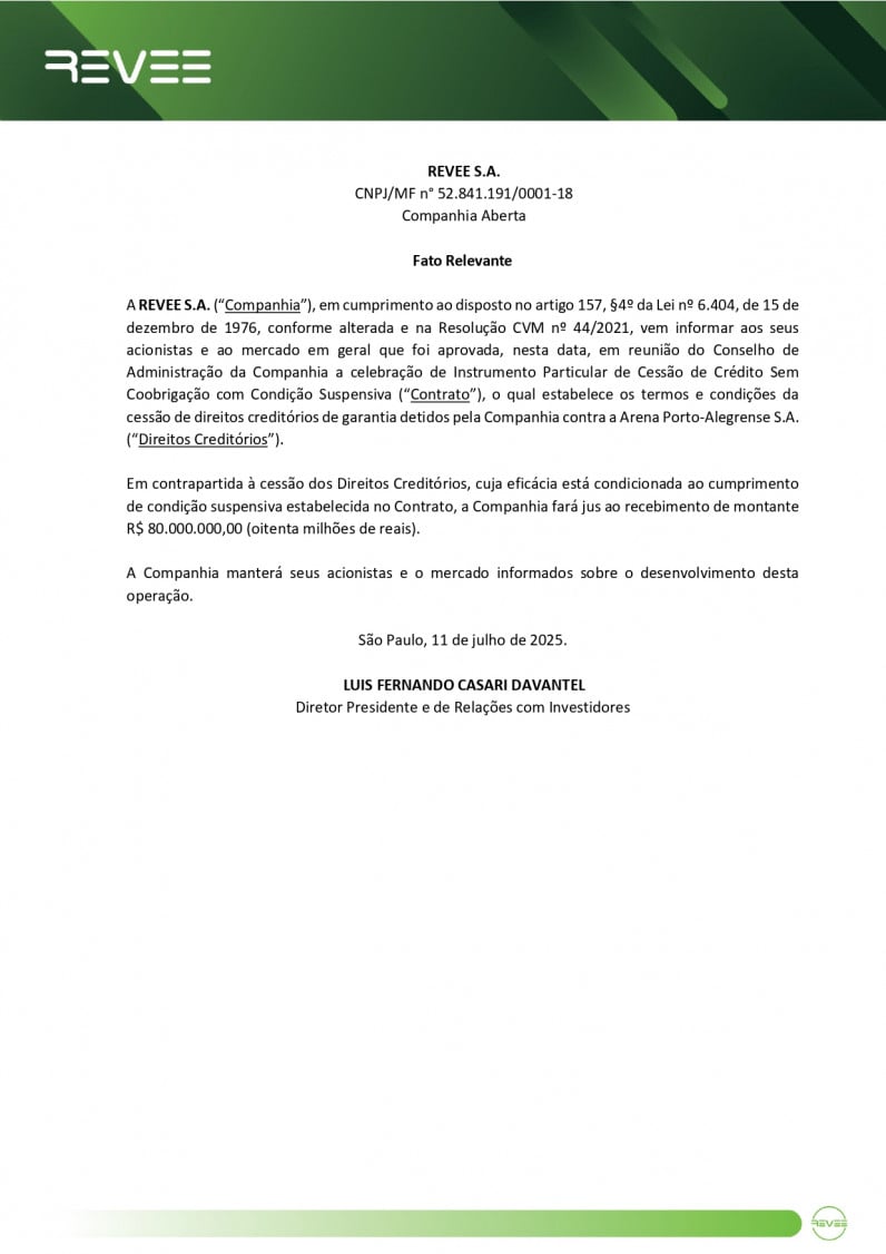 Revee comunicou fato relevante aos seus acionistas na noite de sexta-feira