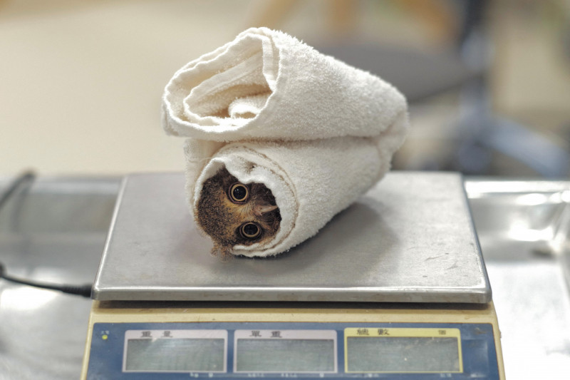 Uma coruja-das-montanhas bebê chamou atenção das lentes de câmeras nesta quarta-feira (29). A pequenina de apenas 76 gramas foi fotografada enquanto realizava exames de rotina no Parque Temático Leofoo Village, no condado de Hsinchu, na ilha de Taiwan. Embrulhada em um pano enquanto a equipe médica verificava sua saúde (foto), a ave lembra um burrito. Normalmente, as corujas-da-montanhas adultas aumentam o peso apenas até 110 gramas e medem cerca de 20 centímetros de comprimento. A espécie pode viver por até dez anos. Natural do Sul da China e do Sudeste da Ásia, esse tipo de ave tende a viver em florestas úmidas e se alimenta de besouros e mariposas, que encontra na densa vegetação rasteira.