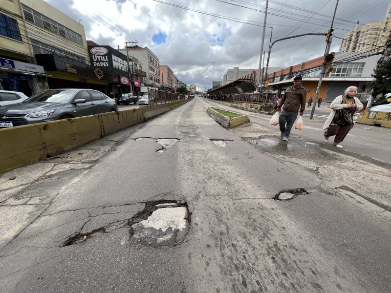 Buracos estão no caminho de ônibus e pedestres em avenida de Porto Alegre