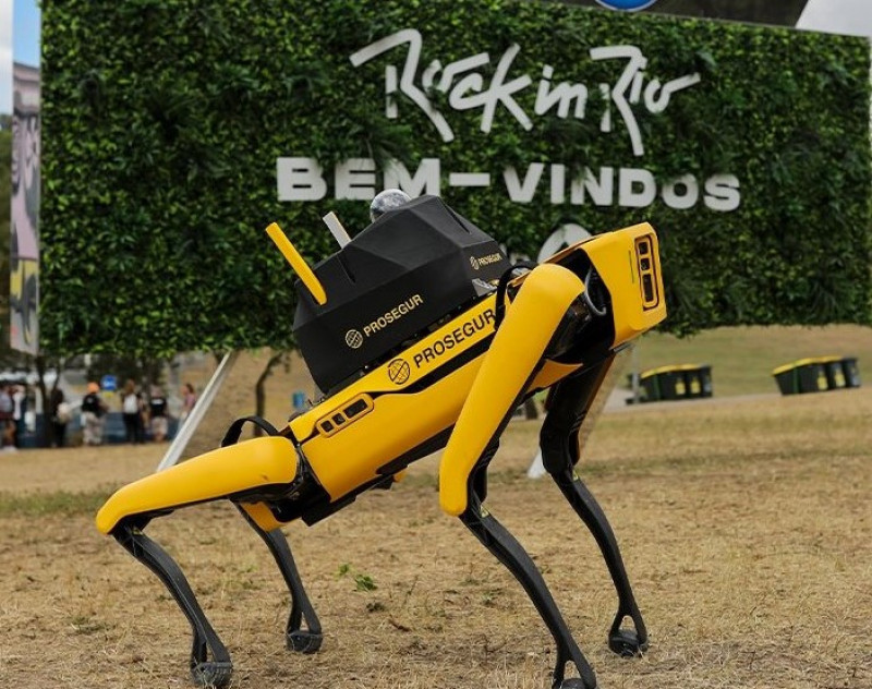 Um cão-robô fará parte do esquema de segurança do Rock in Rio 2022. A novidade, chamada de Yellow (foto), já foi utilizada nos festivais Mutua Madrid Open e Rock in Rio Lisboa. Com diversos dispositivos, o cão utilizará de tecnologia 5G para coletar dados do ambiente, como temperatura anormal - detecção de incêndio -, além de identificar eventos suspeitos e se expor a ele, evitando, se necessário, o risco à vida humana e outros tipos de situações que podem impactar a segurança do evento. O Yellow reportará, em tempo real, todas as informações coletadas por ele aos agentes de monitoramento presentes no Centro de Controle Operacional da SegurPro - empresa responsável pela segurança do evento e desenvolvedora da tecnologia - na Cidade do Rock. O festival ocorre nos dias 2, 3, 4, 8, 9, 10 e 11 de setembro no Parque Olímpico do Rio de Janeiro, e vai receber 250 shows ao longo de 500 horas de música. Cerca de 700 mil pessoas são esperadas para comparecer no evento.