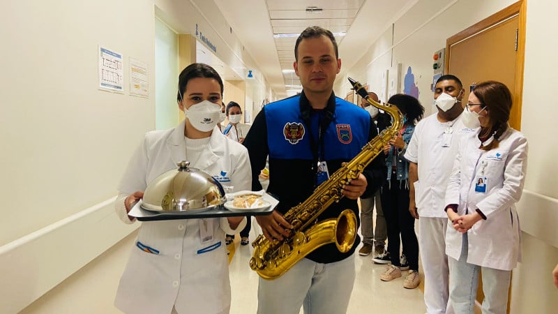 Saxofone e torta de chocolate marcam os 59 anos de casamento de paciente internado