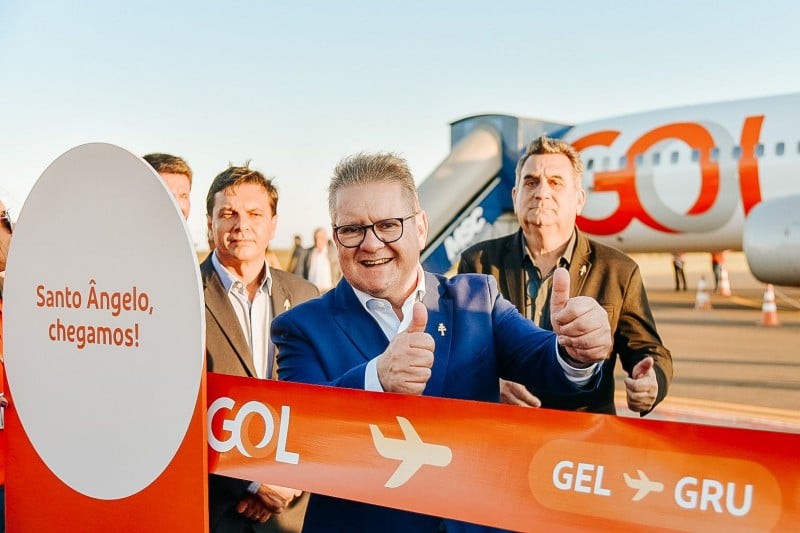 Pousou em Santo Ângelo, às 18h12 desta terça-feira (18), o primeiro voo regular de São Paulo para a cidade das Missões, operado pela Gol Linhas Aéreas. O Boeing 737-800 decolou do aeroporto internacional de Guarulhos (SP). O governador Ranolfo Vieira Júnior esteve no aeroporto regional Sepé Tiaraju para acompanhar o desembarque inaugural. Com a nova rota, a região das Missões, importante polo produtivo e turístico no Estado, passa a ter conexão direta com São Paulo e fica mais próxima de outros destinos no Brasil e do mundo. Desde o ano passado, o RS se tornou o Estado com o maior número de voos regionais e o que mais tem maior número de municípios com voos diretos para São Paulo. Em 2022, a Gol iniciou as ligações aéreas para Pelotas e Uruguaiana e, agora, Santo Ângelo. Em novembro, será a vez de Santa Maria.