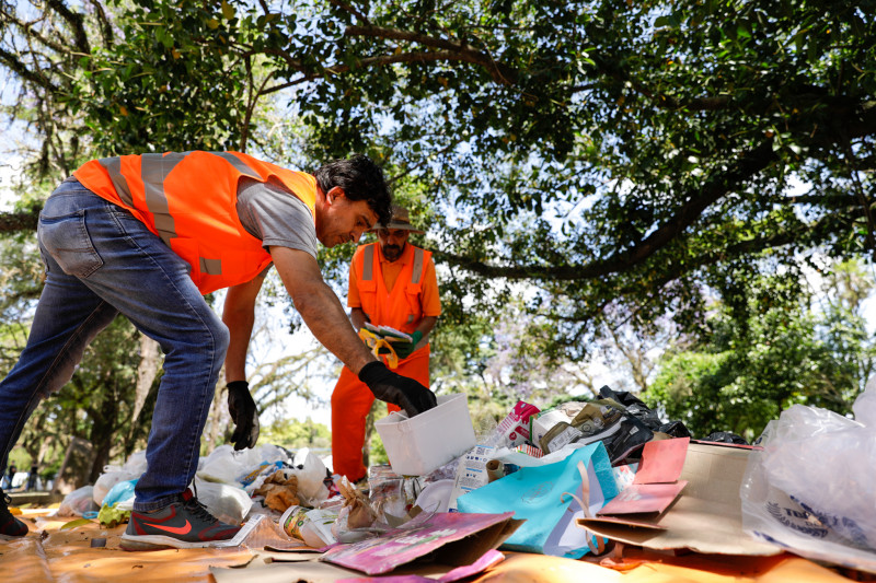 O Departamento Municipal de Limpeza Urbana (DMLU) realizou, na manhã desta quinta-feira (27), a Ação Lixo Certo, que integra a programação da Semana Lixo Zero. A atividade aconteceu na Praça Brigadeiro Sampaio esquina com rua General Portinho, Centro Histórico. Na ação, o DMLU retirou os resíduos de um contêiner, específico para disposição de orgânicos e rejeitos, e colocou o conteúdo em uma lona para análise dos materiais. Foram encontradas falhas na separação, visto que cerca de 40% do que foi retirado eram resíduos recicláveis que deveriam ser dispostos para coleta seletiva, que acontece em dias e horários específicos para este tipo de recolhimento. A Semana Lixo Zero iniciou na segunda-feira (24), e segue com ações nesta sexta (28), no Bairro Restinga, e no sábado (29), no Bairro Cristal.