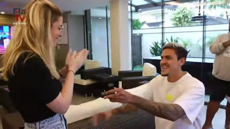 Após clamor de torcedores e certa incerteza quanto à convocação de Pedro, do Flamengo, para defender o Brasil na Copa do Mundo do Catar, na tarde desta segunda-feira (7) o anúncio veio: o atacante foi um dos 26 convocados para vestir a amarelinha. Mas esse não foi o único 'sim' que o jogador ouviu. Pedro aproveitou o momento para pedir a namorada, a psicóloga Fernanda Nogueira, em casamento. "Quero deixar esse dia ainda mais especial porque a Fernanda é a mulher que eu quero levar pro resto da minha vida", disse o jogador antes de se ajoelhar e pedir a mão da amada, em transmissão na Fla TV. "É um momento que vai ficar marcado para o resto da vida dele, a primeira convocação para a Copa, acredito que vão acontecer muitas ainda", disse a, agora, noiva ao canal do rubro-negro.