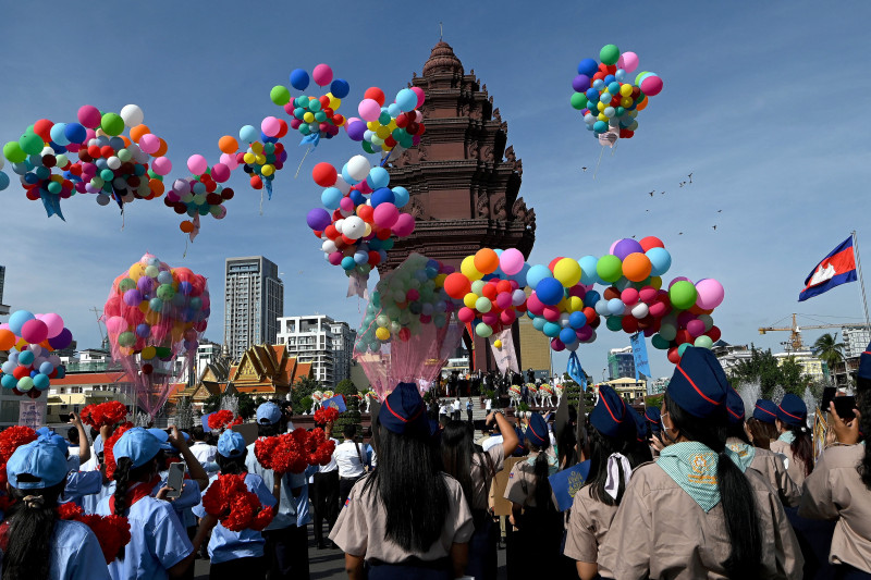 O Camboja celebra nesta quarta-feira (9) os 69 anos de sua independência. Balões foram lançados no Monumento da Independência (foto), em Phnom Penh, capital do país, para marcar a data. O país do sudeste asiático estava à beira de dissolução em meados do século XIX. Após inúmeros pedidos de ajuda aos franceses, um protetorado foi criado em 1863. Em 1884, o Camboja foi tornado colônia da França, sendo parte da União da Indochina, junto a Annam, Tonkin, Cochin-China, e Laos. A independência só aconteceria em 9 de novembro de 1953. Atualmente, o país é movido pelo sistema de mercado aberto, sendo o ramo têxtil o turismo os setores mais relevantes para o PIB nacional. O Camboja é influenciado por culturas asiáticas variadas, além de referências francesas e estadunidenses, que podem ser vistas na capital, um dos poucos centros urbanos da nação.