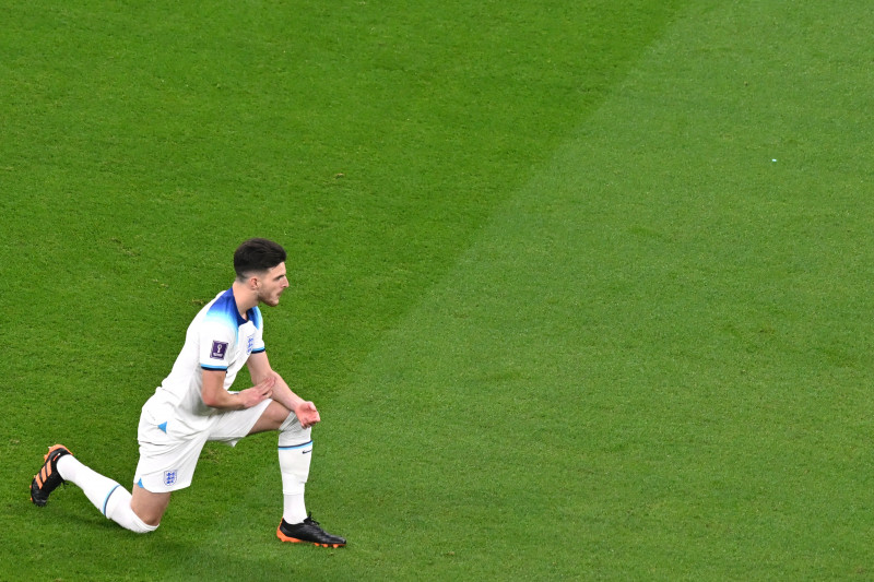 Os jogadores da Inglaterra se ajoelharam antes da partida contra os Estados Unidos na Copa do Mundo nesta sexta-feira (25). A equipe inglesa fez o movimento segundo antes do apito inicial para o jogo do Grupo B, enquanto os atletas estadunidenses ficaram em pé no campo. A Inglaterra realiza o movimento antes das competições há dois anos, como forma de oposição ao racismo e à discriminação. Os ingleses optaram por não o fazer na recente Liga das Nações pela primeira vez neste período, mas repete a atitude no Mundial. O time de Gareth Southgate já havia ficado de joelhos antes do jogo da estreia, contra o Irã, na segunda-feira (21). O capitão Harry Kane havia comunicado a vontade de utilizar a braçadeira One Love, em apoio à comunidade LGBTQIA+. Porém, voltou atrás após a FIFA ameaçar dar um cartão amarelo a qualquer jogador que utilizasse a braçadeira.