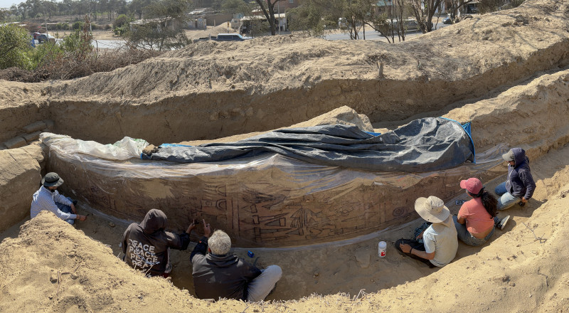 Um mural pré-hispânico com cenas mitológicas (foto) foi descoberto por arqueólogos no norte do Peru. Os pesquisadores só tinham visto o painel em fotografias tiradas no início do século XX, e o achado tem um valor excepcional devido ao seu bom estado, conforme afirma o suíço Sam Ghavami, responsável pelo projeto. "É uma descoberta excepcional, antes de tudo porque é raro encontrar pinturas murais de tal qualidade na arqueologia pré-colombiana", diz Ghavami, que passou quatro anos procurando o mural no sítio funerário Huaca Pintada, em Illimo, uma cidade de Lambayeque. A cena retratada "parece ser inspirada pela ideia de uma hierarquia sagrada construída em torno de um culto aos ancestrais e seus vínculos íntimos com as forças da natureza", explica o pesquisador. Com informações da AFP.