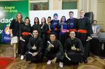Uma missa realizada na manhã desta quinta-feira (8) celebrou o aniversário de 62 anos do Hospital Nossa Senhora da Conceição (HNSC), na Capela Ecumênica - espaço dedicado a fiéis e pessoas sem religião. A homenagem contou com a participação do Coral da Associação dos Servidores do Grupo Hospitalar Conceição (Aserghc), que embalou o público com cantos de louvor. O culto também agraciou Nossa Senhora da Conceição, padroeira do hospital que tem seu dia de comemoração na mesma data, assim como o centenário de nascimento do fundador do HNSC, Jahyr Boeira de Almeida, que já faleceu. Ao final da missa, os familiares de Almeida participaram da inauguração do memorial em homenagem ao fundador no Grupo Hospitalar Conceição (GHC). O ato emocionou os presentes, mas em especial a esposa de Jahyr, Ida Almeida, de 93 anos. O Hospital Conceição é a maior unidade do GHC, com 5.092 empregados e 787 leitos.