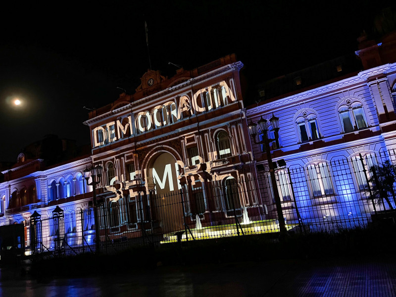 Em comemoração ao Dia da Democracia e dos Direitos Humanos, a Casa Rosada, sede da presidência da Argentina, terá projeções para celebrar os 39 anos do retorno do regime democrático no país. A fachada recebe um videomapping que apresentará, por meio de animações 2D e 3D, diferentes jogos gráficos que destacam a arquitetura particular do edifício, ao mesmo tempo em que exibem imagens de arquivo em alusão à data. As projeções acontecem nos dias 9 e 10 de dezembro, das 21h à meia-noite. A última ditadura argentina teve início, por meio de um golpe de Estado, em 24 de março de 1976, com a deposição de Isabelita Perón. O período foi marcado pelo Terrorismo de Estado, com a criação de, pelo menos, 364 campos de concentração e de centros clandestinos de detenção e extermínio.O regime ditatorial se encerrou com um chamado para eleições democráticas, realizadas em 24 de fevereiro de 1946, nas quais Juan Domingo Perón saiu vencedor.