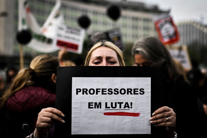 Os professores em Portugal saíram às ruas de Lisboa na Marcha pela Escola Pública para protestarem contra a defasagem salarial, exigindo melhores vencimentos e condições de trabalho mais adequadas. O protesto, que ocorre depois de duas semanas de greve, é um dos maiores dos últimos anos no país europeu e pressiona o governo do primeiro ministro socialista António Costa. A manifestação nacional foi organizada pelo Sindicato de Todos os Profissionais da Educação (STOP). Entre as palavras de ordem mais ouvidas está o pedido de renúncia do ministro da Educação, João Costa. A forma de contratação dos profissionais também está na pauta. Os docentes da faixa salarial mais baixa recebem por volta de € 1.100 mensais, e apontam que o aumento do custo de vida inviabiliza a manutenção dos salários atuais.