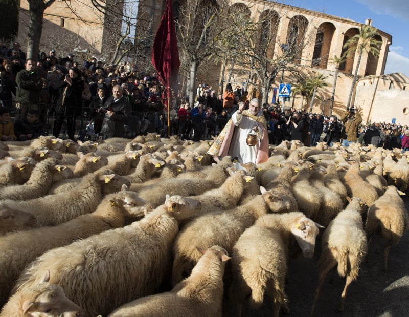 A ilha de Maiorca, a maior do arquipélago das ilhas Baleares da Espanha, comemora neste 17 de janeiro o dia de Santo Antônio, padroeiro dos animais. Um padre abençoou um rebanho de ovelhas (foto) durante a tradicional cerimônia de bênção dos animais Beneides (Bênçãos em língua maiorquina), em Muro. Na data, são realizadas bênçãos de cavalos, gado, aves, cães e assim por diante por toda a Maiorca, além de desfiles de animais em algumas localidades. A tradição da ilha envolve enormes fogueiras, churrascos e pessoas disfarçadas de demônios dançando pelas ruas. Algumas aldeias maiorquinas também preservam costumes específicos. Em Sa Pobla, após a missa religiosa, um "clamador" começa o início da festa. Então os demônios e caparrots (bigheads) começam a dança chamada Correfoc. Já a cidade de Artà começa a celebração pela manhã e realiza um almoço especial que conta com chocolate quente, e um prato com batatas inglesas e salsicha.