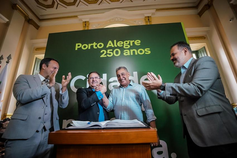 O prefeito Sebastião Melo (MDB) transmitiu nesta quinta-feira (19), o cargo ao presidente da Câmara Municipal, vereador Hamilton Sossmeier (PTB). Ele assume como prefeito em exercício até a próxima segunda-feira (23), quando o vice-prefeito Ricardo Gomes (MDB) retorna de férias para ocupar a função. Para Melo, a relação de diálogo e trabalho conjunto é fundamental para o desenvolvimento da cidade. “A harmonia e o respeito entre os poderes são pilares fundamentais da democracia ao permitir atos como este”, afirma. Melo se licencia temporariamente do cargo para período de férias, que se estende até o dia 31 de janeiro. O vereador Moisés Barboza (PSDB) assumirá a presidência interina da Câmara de Vereadores no lugar de Sossmeier.