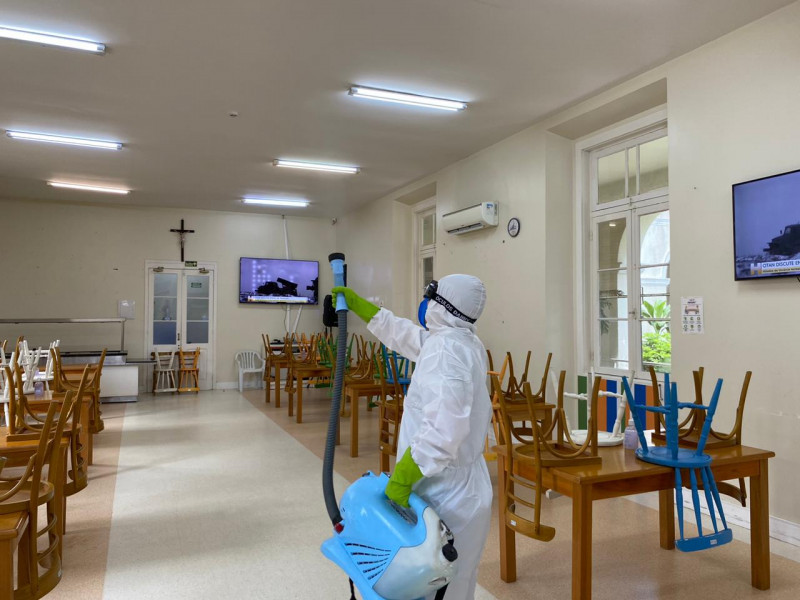 Asilo Padre Cacique passa por sanitização contra Covid-19