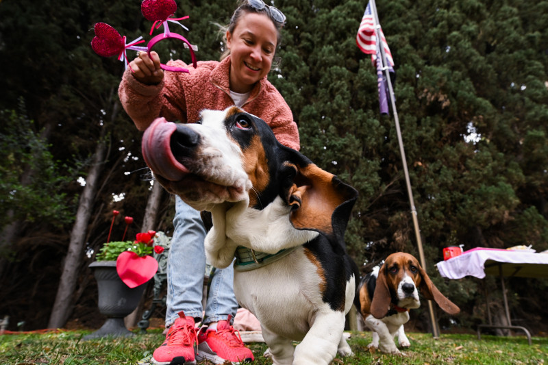 Entre mordidas e lambidas, os bassets fizeram a alegria de quem pôde participar do brunch de Valentine's Day para arrecadar doações para a Basset Hound Rescue of Southern California, nos Estados Unidos, no último sábado (11). Bubbie, um Basset Hound, experimenta algumas orelhas em forma de coração (foto) enquanto cães e seus companheiros passeiam pelo pátio e recebem carinhos durante o evento. O Valentine's Day - que é comemorado em 14 de fevereiro - serviu para o grupo chamar a atenção para a importância do resgate e adoção. O Basset Hound é conhecido como a raça mais dócil dos cães. A ONG beneficiada resgata, cuida e procura um novo lar para cães abandonados, feridos ou desabrigados. A organização reuniu seus esforços para resgatar seu primeiro cão, Cleópatra, em 1997. Desde então, já ajudou 2.291 Hounds a serem adotados.