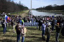 A guerra na Ucrânia completa um ano nesta sexta-feira (24) com americanos e europeus cada vez mais envolvidos no conflito, e uma tensão cada vez maior dos Estados Unidos com Rússia e China, rivais históricos que voltam a se alinhar. A guerra deixou mais de 280 mil mortos em ambos os lados, segundo estimativas, e 13 milhões de pessoas deixaram suas casas na Ucrânia. A cada incursão russa em território da Ucrânia ao longo destes 12 meses de conflito, alianças e acordos internacionais tiveram de se rearranjar. Na Croácia grupo de feministas realiza protestos contra o conflito e seguram faixa (foto) dizendo: 'Pare a guerra agora', durante manifestação que marca o primeiro aniversário da invasão russa da Ucrânia.