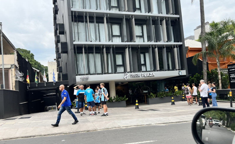 Jogo decisivo do Grêmio na Arena, e, claro, concentração no novo point dos tricolores em Porto Alegre. Torcedores foram e se hospedaram no hotel temático do Grêmio, no bairro Moinhos de Vento, zona nobre da Capital. O Moinhos 1903, em alusão ao ano de fundação do clube, Park Plaza, que abriu no segundo semestre de 2022, é também o local oficial agora de concentração do time e comissão técnica do Grêmio. Antes da equipe deixar o hotel na rua Dr Timóteo embarcada no ônibus tricolor rumo ao confronto decisivo com o Ypiranga, muitos gremistas já estavam na calçada em frente ao Moinhos 1903. O empreendimento é vinculado à bandeira da rede hoteleira Radisson e é administrado pela Atlântica Hotels. O hotel foi erguido pela Melnick, em acordo com o clube, que terá royalties pelo uso da marca e outras ações.