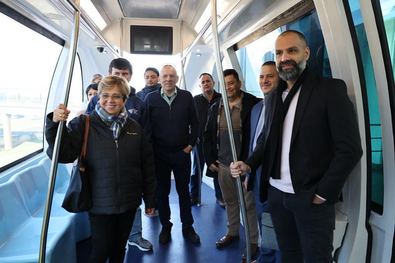 A linha do Aeromóvel de Porto Alegre, operada pela Trensurb, entre o metrô e o Aeroporto Salgado Filho, recebeu visita de uma comitiva formada por autoridades da Costa Rica nesta terça-feira (15). Participaram da atividade deputados federais, prefeitos, gestores públicos e de um consórcio responsável por estudar a implantação de uma linha da tecnologia no país centro-americano. O objetivo foi aprofundar o conhecimento sobre a tecnologia, visando o avanço dos estudos para implantação do sistema na Costa Rica, numa linha que daria acesso ao principal aeroporto do país. Além de conhecerem a linha de aeromóvel que liga metrô e aeroporto, os visitantes também se reuniram com o diretor-presidente substituto e diretor de Operações da Trensurb, Nélson Lídio Nunes, e com técnicos e gestores da empresa.