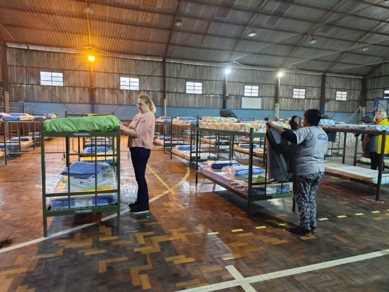 O Ginásio do Departamento Municipal de Habitação (Demhab), localizado na rua Conde D'Eu, 66, bairro Santana, está preparado para receber até 50 pessoas atingidas pelo temporal. A abertura foi determinada pelo prefeito Sebastião Melo, na manhã desta sexta-feira (16). No ginásio, foram colocadas à disposição da população kits de higiene, alimentação e camas. De acordo com presidente da Fasc, Tiago Simon, a abertura do ginásio é um espaço de retaguarda para acolher famílias em situação de vulnerabilidade. A rede de acolhimento da prefeitura se uniu parceiro para garantir o acolhimento, afirma Simon. A equipe da Fundação de Assistência Social e Cidadania (Fasc) dará suporte e orientações às pessoas acolhidas. A Secretaria Municipal de Desenvolvimento Social (SMDS) disponibilizou transporte para o atendimento.